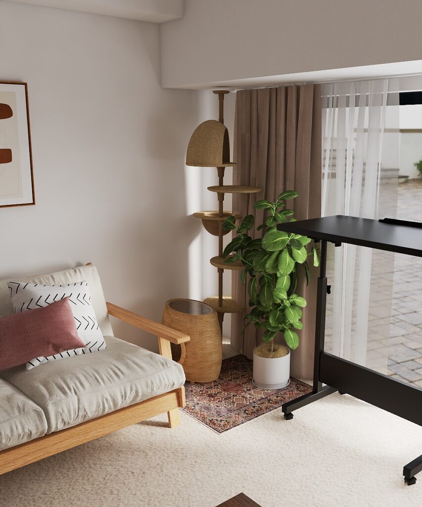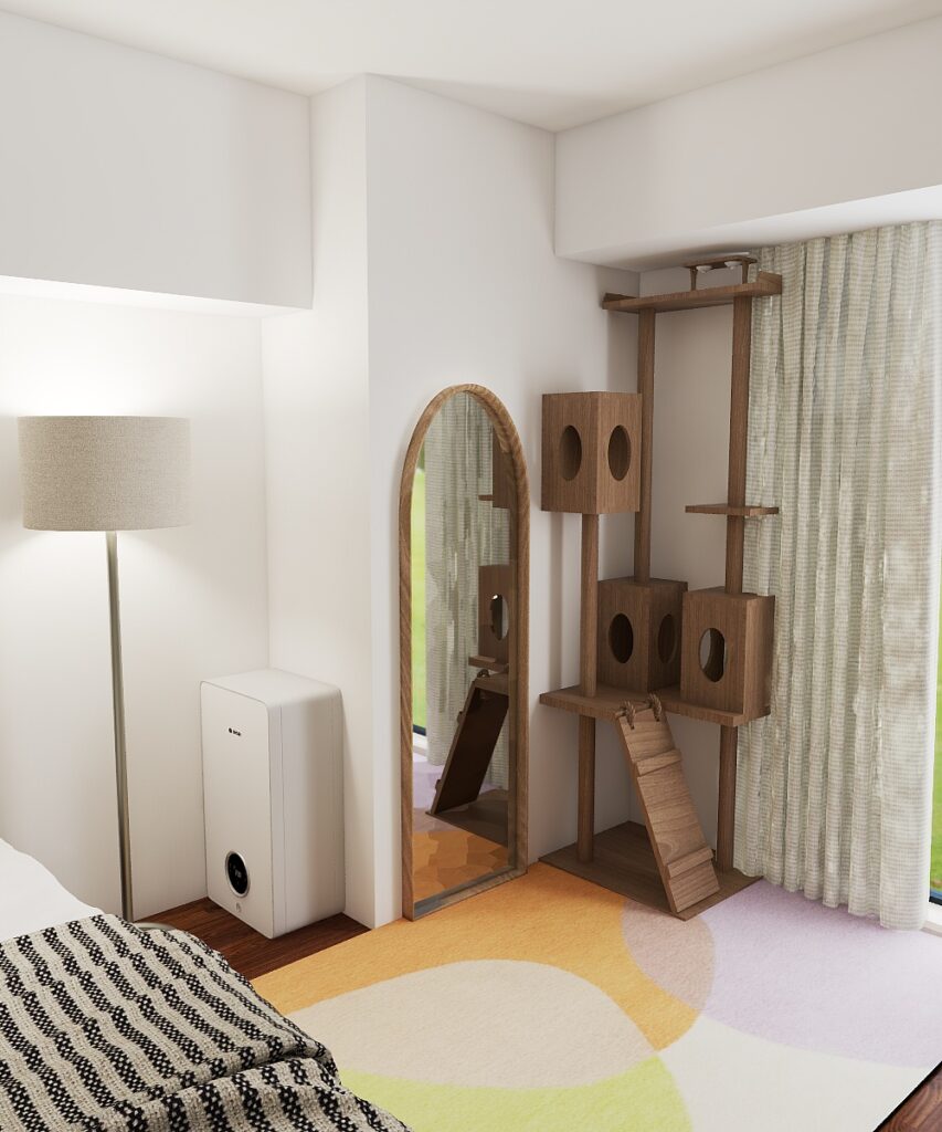 • 猫ちゃんとの暮らし:猫グッズがあるとゴチャついて見えてしまうため、インテリアに馴染むようにしたい。