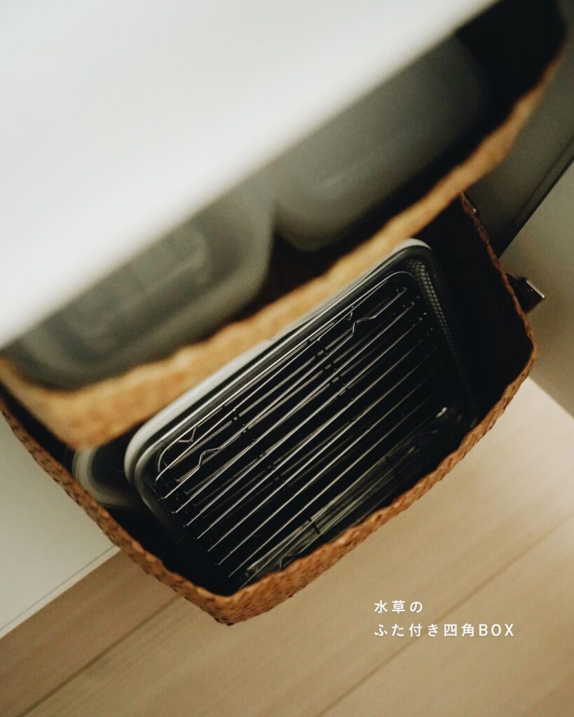 四角いカゴは収まりがいいし、ここが自然素材なだけで、扉を開けたときの私の気持ちが少しだけ潤うから(笑)